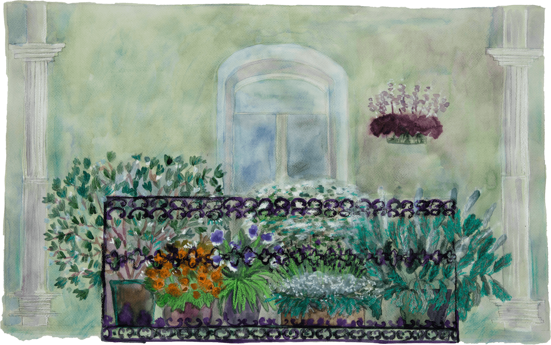 Палитра густых оттенков зеленого, бежевого, коричневого и плотные заросли свежей зелени – балкон для раздумий, поиска себя, меланхолии, тихой музыки, грустной поэзии